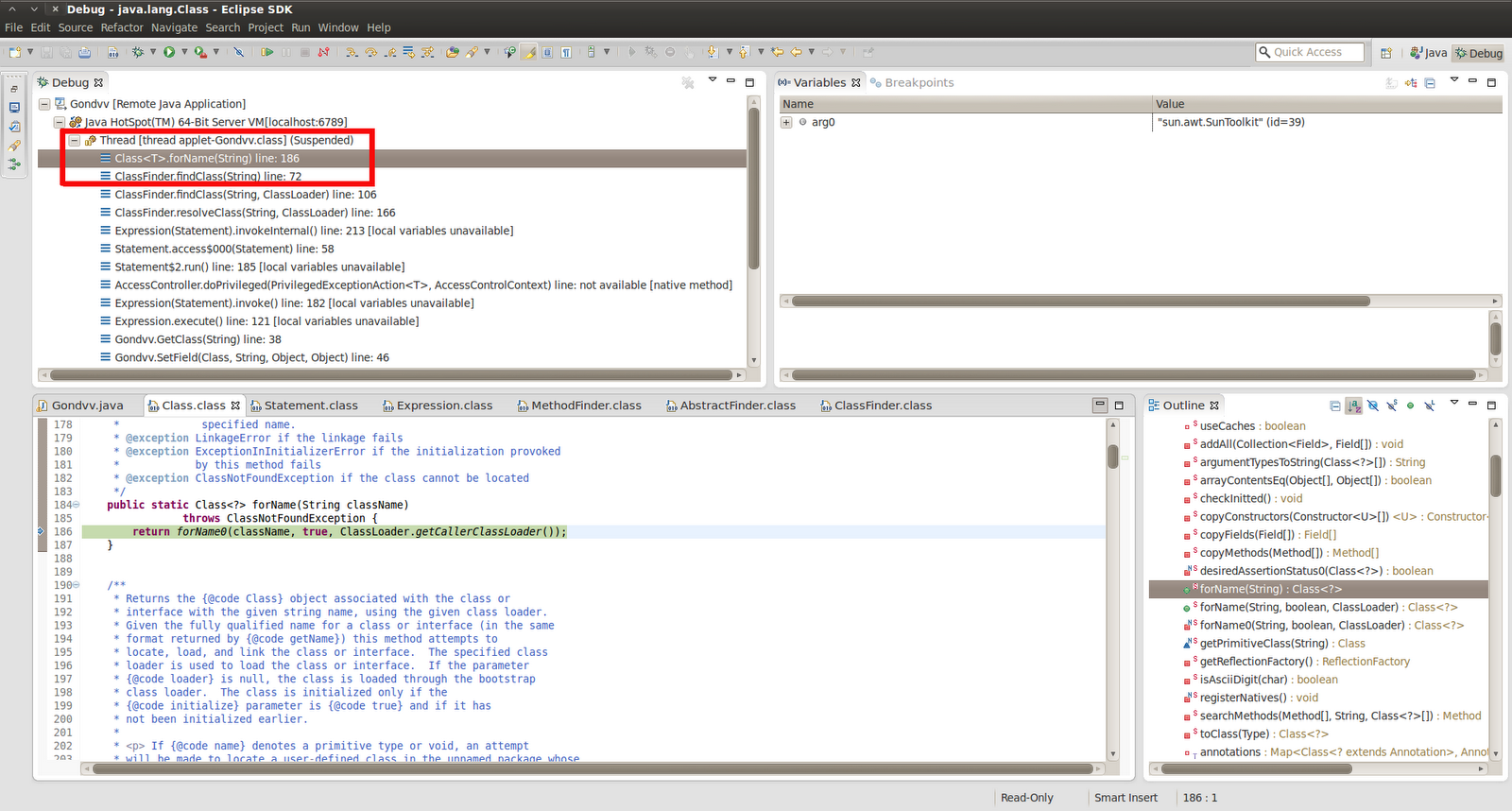 - With one bug it gets a reference to the sun.awt.SunToolkit